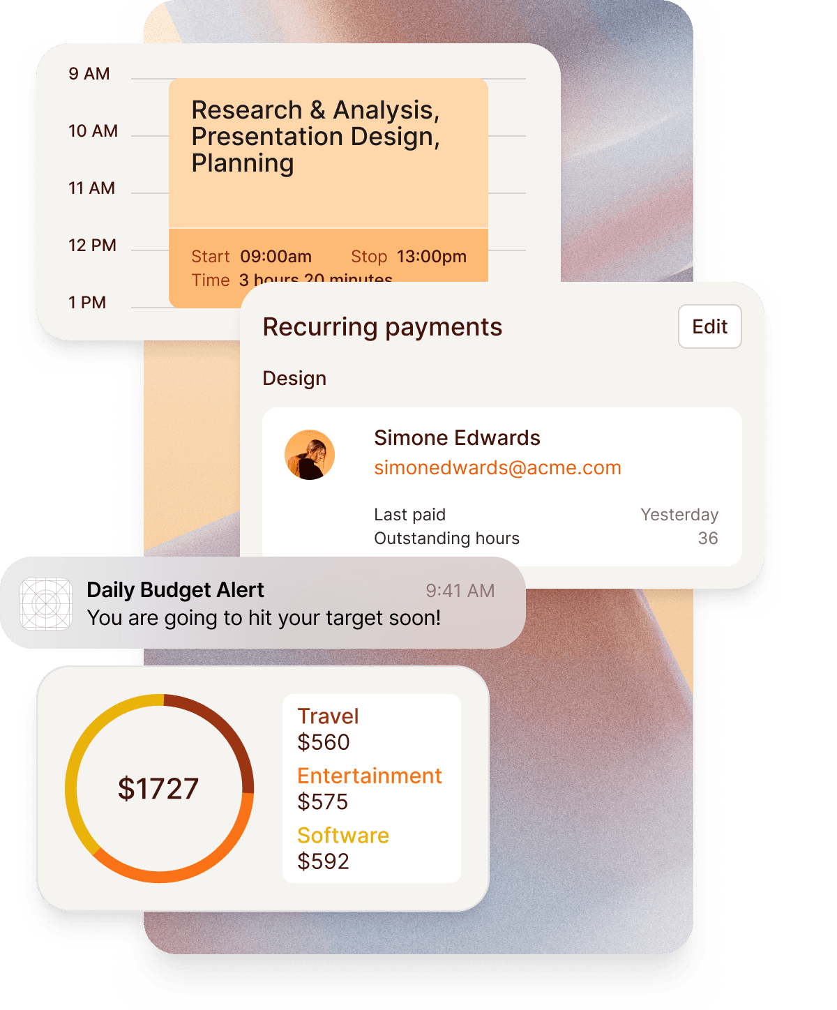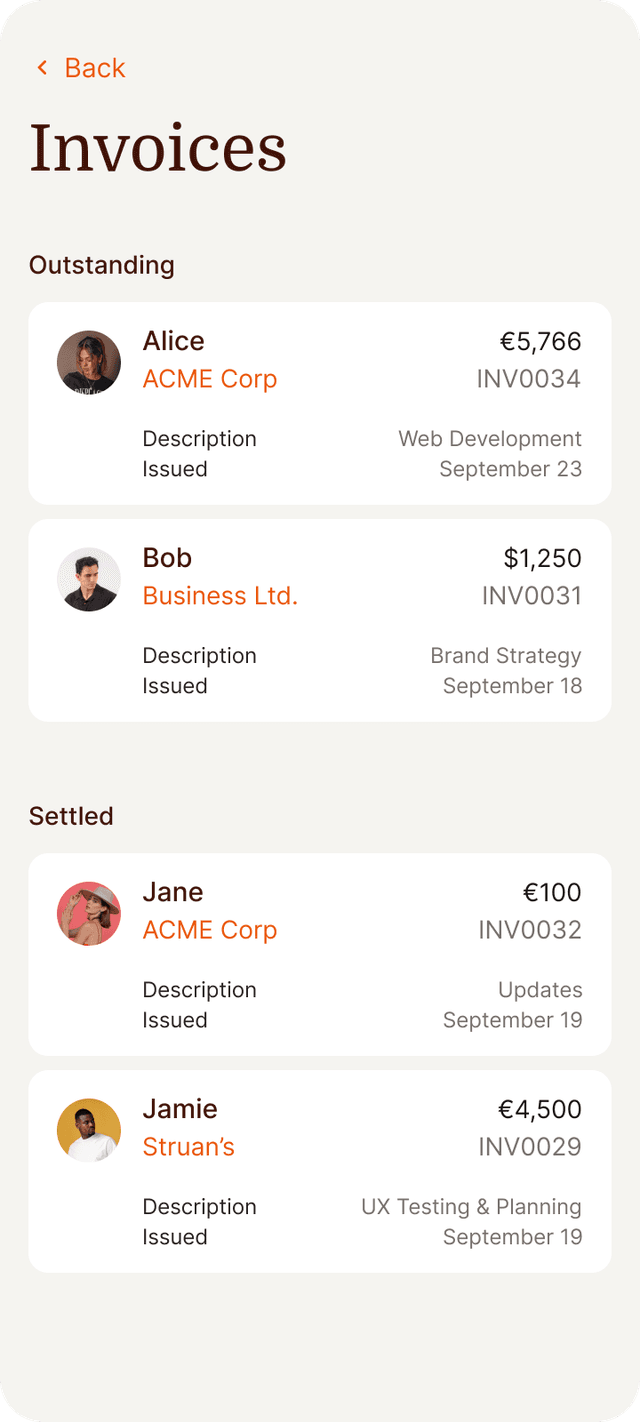 Track time, invoice clients, and get paid in one seamless flow.